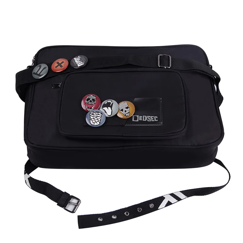 Marcus Holloway Cosplay Backpack Bag Game Watch Dogs 2 Adults Black Satchel with Badge Carnival Par