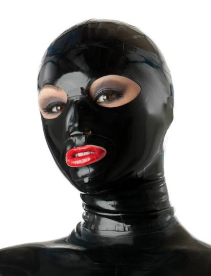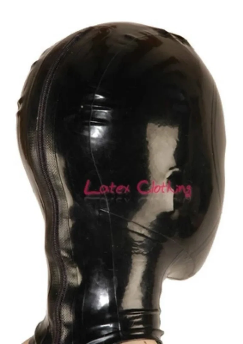 Black Latex Hood Rubber Mask Full Face with Zipper Cosplay Mask adult games bondage mask hoodmask l